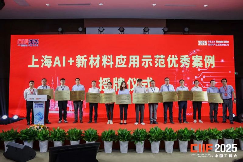 本次高峰论坛上,国家工信部原材料司新材料处处长江川、上海市经信委新材料处处长陆寅共同为12项“上海AI+新材料应用示范优秀案例”授牌。华东理工大学AI plus Polymers平台,获得“上海AI+新材料应用示范优秀案例”。